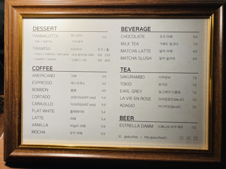 상호명과 동일하게 아메리카노를 가배라고 표현해놓았다