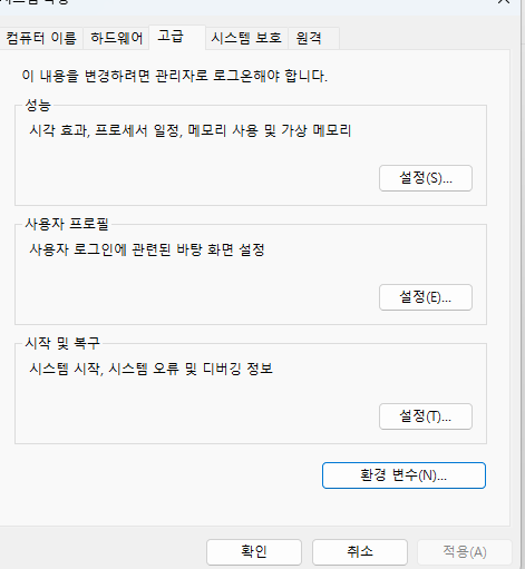 설치가 완료되었으니 이제 환경변수를 등록해보도록 하자.