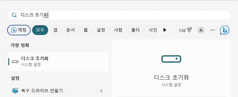 1. 오른쪽 아래 검색을 통해 디스크 초기화 선택!